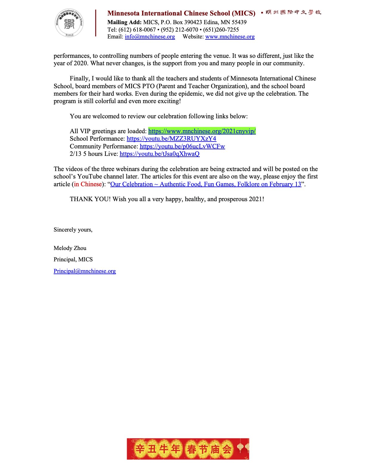 Thank You For Supporting Mics Chinese New Year Celebration Minnesota International Chinese School